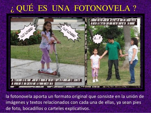 - 4. la fotonovela aporta un formato original que consiste en la unión de imágenes y textos relacionados con cada una de ellas, ya sean pies de foto, bocadillos o carteles explicativos.